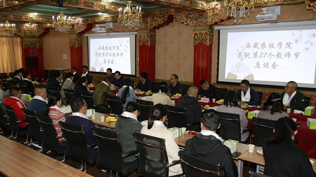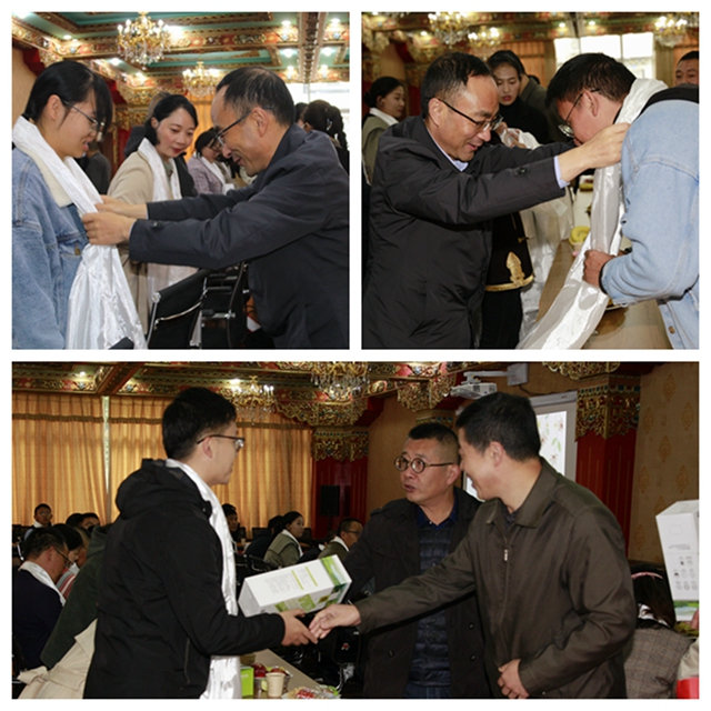 2021年9月10日上午,西藏农牧学院召开庆祝第37个教师节座谈会。西藏农牧学院党委书记、副院长云丹加措在座谈会上讲话,党委副书记、院长娄源冰,副院长郑维列,党委委员、副院长郭永刚为教师代表敬献哈达,送上节日爱心礼包。座谈会由党委副书记、副院长王从严主持。