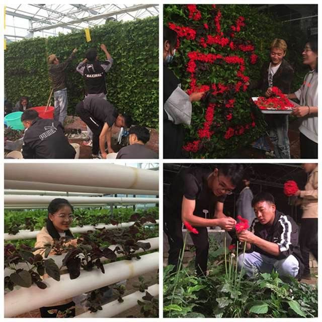 本次活动由植物科学学院园艺教研室主办,植物科学学院团总支科技创新部协办,由敬志豪,德庆措姆,郭雨瑞,李静,秦丽,罗定一,洪大伟等老师指导,设施农业科学与工程、园艺、植物保护、农学,农经等多专业学生参与,于2020年10月开始适宜植物材料筛选工作,并通过使用基质再生技术和营养液立体栽培技术实现植物材料的低碳绿色高效扩繁,培育拼图彩色植物2592株,点缀用鲜花600余株,最终于6月30日晚制作完成。