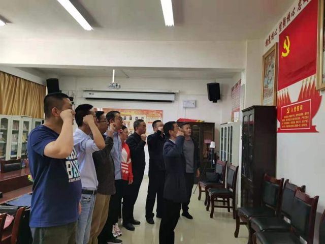 党课主题教育结束后,全体在家党员重温入党誓词。