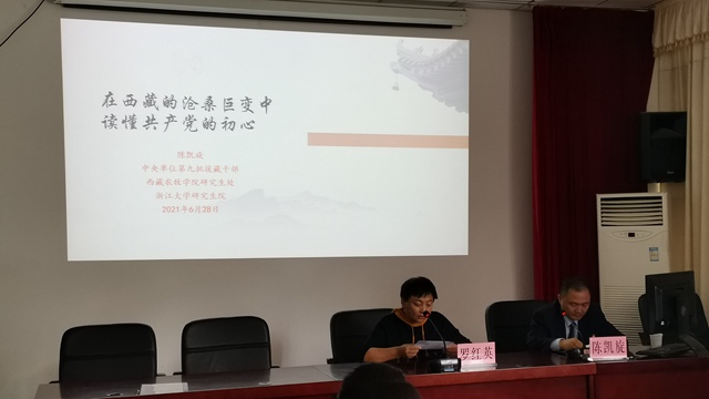 为迎接中国共产党成立100周年,持续深入推进党史学习教育扎实有效开展,引导全体党员干部忆初心使命、展担当作为。6月28日浙江大学援藏干部、研究生处副处长陈凯旋同志为科研处、图书馆、党委办公室(院长办公室)、计划财务处等四个直属党支部的党员干部讲党课。