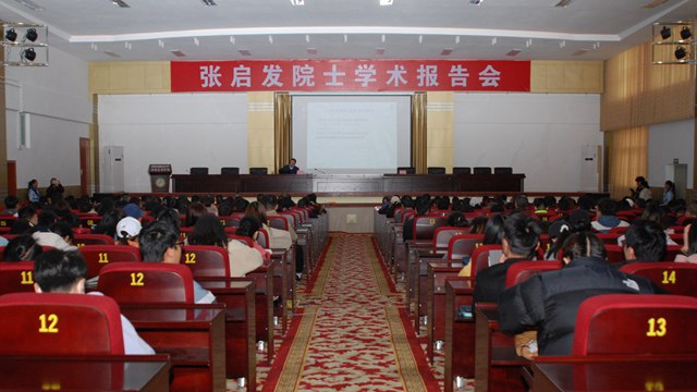 座谈会后,张启发院士为400余名师生做了题为《新时期的稻之道2.0》主题报告会。他以“关于粮食安全的理念、从绿色超级稻到绿色农业、稻作/养殖新模式:双水双绿和新时期的稻之道”等为主题,系统讲述了粮食安全的新理念,绿色超级稻的概念由来、培育的基本策略、品种的示范、推广和应用,“双水双绿”种养理念以及稻米的增值之路等等。他着重讲述了研究团队关于黑米的系列研究成果及未来研究重点,提出了黑米是稻米的最高境界等新理念。报告最后,张启发展望未来,对当前团队正在着力建设的湖北洪山实验室基本情况作了介绍,希望学校科研工作者们勇担使命,围绕青藏高原黑青稞、墨脱水稻种植等系列课题开展研究,引领产业创新,推动社会进步。