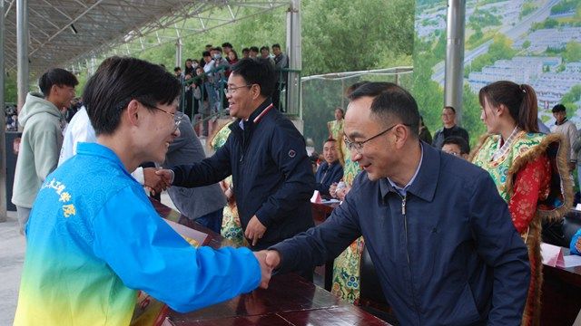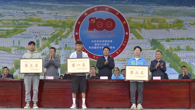 学院领导云丹加措、娄源冰、郑维列分别为团体总分第一、二、三名获奖集体颁奖。