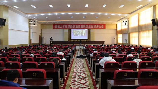 本次活动以“创新创业创青春 刻苦学习报党恩”为主题。自治区教育厅高等教育处副处长、二级调研员朗珍老师;教育厅就业指导中心二级主任科员赵彦钟老师;西藏职业技术学院招就处处长许震宇老师;西藏职业技术学院招就处孙敏老师;林芝市职业技术学校贡保当知老师;竞赛获奖团队代表3名:西藏职业技术学院全球顶级藏彩耗牛骨瓷项目团队学生代表、第六届中国国际“互联网+”大学生创新创业大赛金奖获得者张举;西藏农牧学院雪绒羊绒制品项目团队学生代表、第六届中国国际“互联网+”大学生创新创业大赛银奖获得者陈铭军;西藏民族大学电子绘本馆——创绘项目团队学生代表、第六届中国国际“互联网+”大学生创新创业大赛银奖获得者玉琼;创业代表西藏大智无疆科技有限责任公司总经理武宸羽;区外就业代表中海油田服务股份有限公司湛江分公司平台会计平措次仁,参与此次宣讲活动。