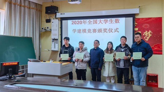 在这春暖花开,万物复苏的季节,我校参加2020年全国大学生数学建模竞赛的学生收到了期盼已久的获奖证书。该竞赛是教务处主办,公共教学部承办,数学建模指导组具体组织学生报名、培训和组织参加竞赛。3月17日上午在公共教学部会议室举办了颁奖仪式,教务处米玛顿珠处长、公共教学部衡思泉书记、公共教学部数学教研室敬久旺主任分别为获西藏赛区一等奖的2个参赛队,二等奖的3个参赛队,成功参赛奖的3个参赛队颁发了获奖证书。