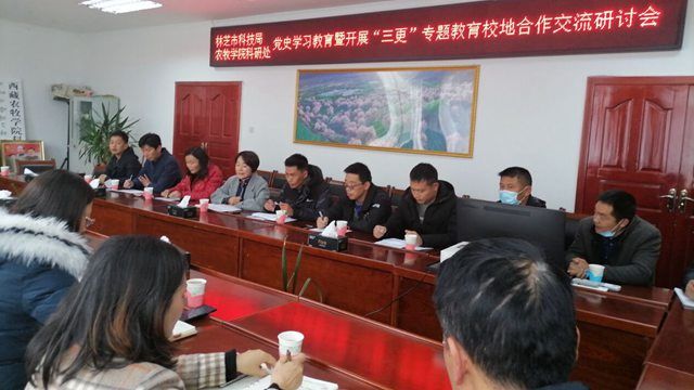 3月18日下午,林芝市科技局、农牧学院科研处召开了党史学习教育暨开展“三更”专题教育校地合作交流研讨会。市科技局党支部书记李莉峰、副局长陈蓉和科研处领导出席,市科技局办公室、高新科、农村科、科协负责人及西藏林芝仙草生态农牧科技有限公司、西藏林芝圣域农牧综合有限公司代表,科研处各科室负责人及近年来承担林芝市校地合作项目的有关专家参加会议,会议由科研处处长刘翠花教授主持。