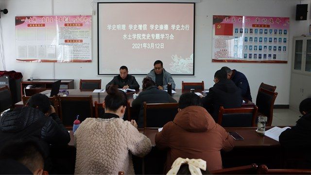 为认真落实党史学习教育部署要求,切实用党的奋斗历程鼓舞斗志,用党的光荣传统坚定信念,用党的历史经验启迪智慧,教育师生员工学党史、感党恩、知党情、跟党走,引导党员干部学党史、悟思想、办实事、开新局,2021年3月12日下午3:30,水土学院党委在学院会议室开展了党史学习教育专题学习会。学院党委全体委员、师生党支部支委会成员、党员工作站和团总支负责人、师生党员代表30余名参加了会议。学习会由党委书记达瓦主持。