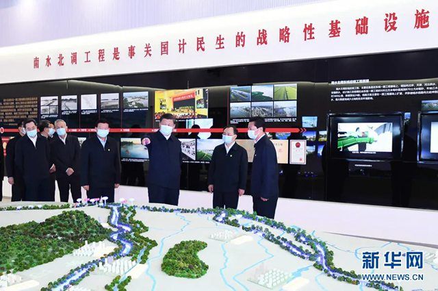 一个大型沙盘模型直观地呈现了中国大地上水资源大范围大规模跨区域调配的壮阔景象,习近平总书记驻足凝望——