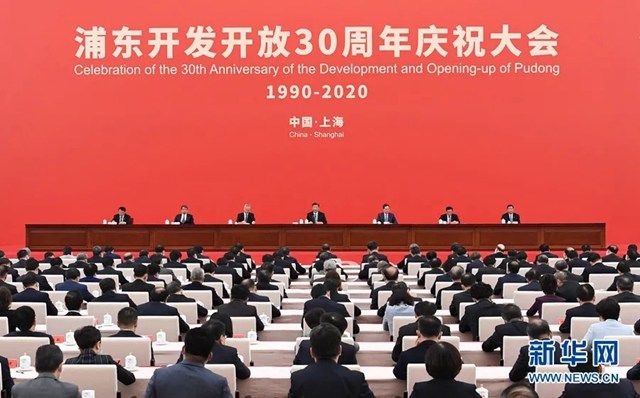 11月12日,浦东开发开放30周年庆祝大会在上海市举行。中共中央总书记、国家主席、中央军委主席习近平在会上发表重要讲话。新华社记者 申宏 摄
