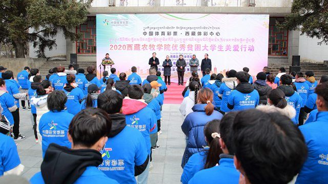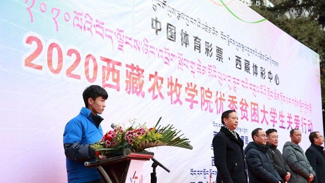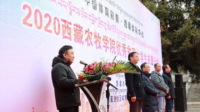 为进一步弘扬体育彩票“公益体彩 乐善人生”的品牌理念,弘扬真善美,传递正能量,11月27日,中国体育彩票西藏体彩中心“2020年西藏农牧学院优秀贫困大学生关爱行动”在我校初心广场举行。西藏自治区体育局一级巡视员旺青格烈,西藏农牧学院党委副书记、院长娄源冰,西藏自治区体育彩票管理中心书记、副主任洛松扎西和自治区体彩中心员工、西藏农牧学院部分教师及及全体受助学生190人出席仪式。