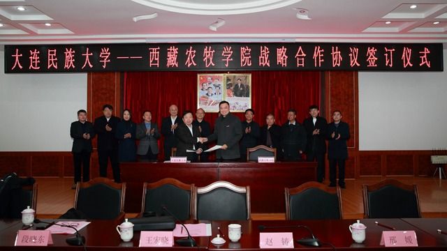 2020年12月1日,西藏农牧学院与大连民族大学召开座谈会并签订战略合作协议。国家民委科教司副司长王宏晓,自治区党委统战部副部长、区民委党组书记赵树明出席会议并见证签约仪式。大连民族大学党委书记赵铸、西藏农牧学院党委书记云丹加措出席仪式并讲话。西藏农牧学院党委副书记王从严主持仪式。