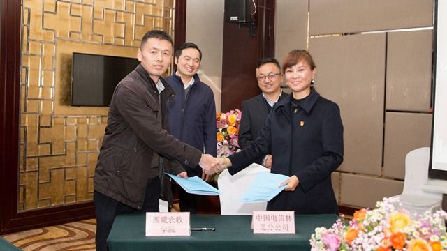 11月6日下午,西藏农牧学院与中国电信集团有限公司林芝分公司签订战略合作协议。中国电信集团有限公司林芝分公司党委书记、副总经理格桑旦增等7人,西藏农牧学院党委副书记、副院长王从严及相关部门负责同志参加签订仪式。