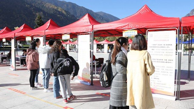 为深入贯彻落实十九届五中全会精神、自治区党委吴英杰书记莅临我院宣讲中央第七次西藏工作座谈会精神,推动高校毕业生多渠道市场就业,有效推进我院高校毕业生就业工作,拓宽就业渠道,协助搭建用人单位与我院高校毕业生双向选择的交流平台,11月11日上午,由自治区人力资源和社会保障厅和我院主办,自治区人力资源市场管理服务中心、林芝市人力资源和社会保障局协办的“2020年金秋暖心岗位送林芝人力资源专场招聘会”在我院文体馆广场举行。