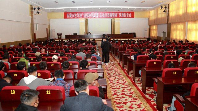 为深入学习贯彻习近平新时代中国特色社会主义思想,学习贯彻中央第七次西藏工作座谈会精神,在青年学生中切实加强马克思主义“五观”教育、西藏地方与祖国关系史教育,引导青年学生铸牢中华民族共同体意识,继承和发扬革命先辈的红色精神,在“十八军子弟开展重走父辈进藏路赴林芝活动”之际,10月17日,西藏农牧学院动物科学学院邀请原十八军宣传部长夏川之子芦继兵(原中国人民解放军装甲兵工程学院指挥管理系主任)来校开展“讲好中国故事,弘扬‘老西藏’精神”报告会。我院党委副书记、副院长王从严出席,思政教师及青年学生代表共计500余人参加此次报告会。