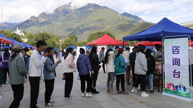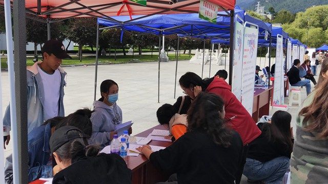 为深入贯彻落实自治区党委吴英杰书记莅临我院宣讲中央第七次西藏工作座谈会精神,进一步促进毕业生转变就业观念,进一步增强信心、发挥所长、施展才华,10月10日上午,由我院主办,自治区高校毕业生就业指导服务中心、林芝市人力资源和社会保障局和西藏世诚人力资源职介有限公司协办的以“青春飞扬,梦想起航”为主题的“2021届高校毕业生秋季校园招聘会”在我院文体馆广场举行。