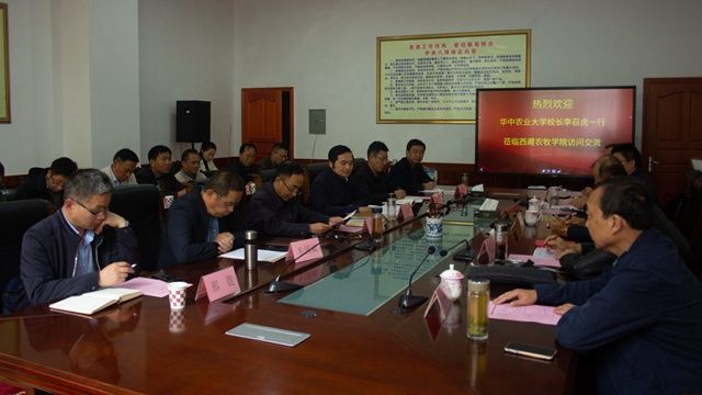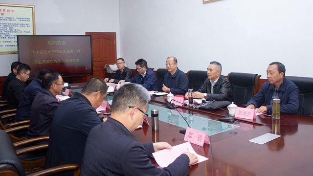9月25日,华中农业大学校长、党委副书记李召虎一行到西藏农牧学院座谈交流。西藏农牧学院党委副书记、校长娄源冰,党委副书记、副院长王从严,双方相关部门负责同志和全体援藏干部共同座谈,对接和推进两校有关合作事宜。
