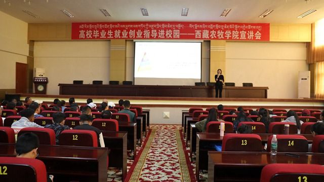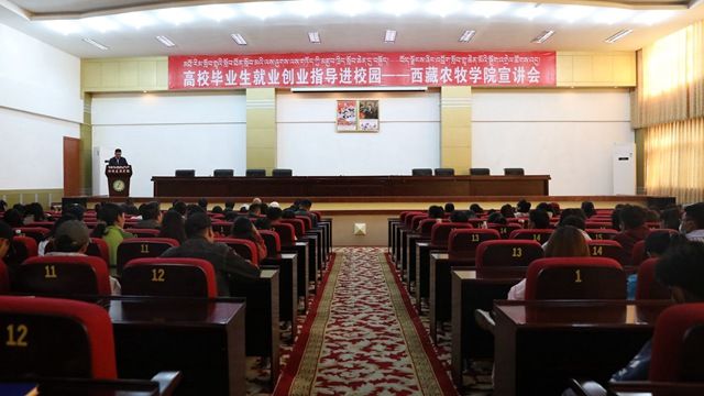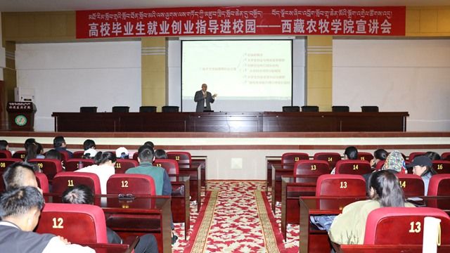 为贯彻落实党中央国务院关于高校毕业生就业工作的决策部署和中央第七次西藏工作会议精神,全力做好“稳就业”工作,落实“保就业”任务,全力促进毕业生更充分更高质量就业。9月21日下午,由人力资源和社会保障部全国人才流动中心和广东省第九批援藏工作队主办,林芝市人力资源和社会保障局和西藏农牧学院承办的“高校毕业生就业创业指导进校园——西藏农牧学院宣讲会”,在我院1号办公楼会议室成功举办。本次活动以“解读就业创业形势、分享就业创业经验、提升就业创业能力”为主题。学院党委副书记、副院长王从严,人力资源社会保障部人才中心毕业生就业服务处处长李红义、林芝市人力资源和社会保障局副局长李志平、学院招生就业处处长薛涛等领导出席宣讲会。威胜集团有限公司董事、行政人力资源总监李婷和北京万学教育科技有限公司执行总裁张强受邀作就业创业指导讲座。西藏农牧学院400余名在校师生参加了宣讲活动,活动由我院招生就业处处长薛涛主持。