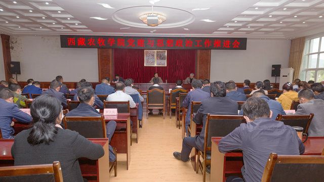 会上,王从严同志就深入推进2020年党建和思想政治工作、学校师生思想政治教育专项整治工作、“一考三评”工作进行了安排部署,对学校“不忘初心、牢记使命”主题教育工作进行总结并讲话,提出了明确要求,为学校下一步工作指明了方向。他指出第二批主题教育开展以来,学校党委按照党中央和区党委决策部署,在自治区第四巡回指导组的有力指导下达到了预期目标,全院各级党组织要巩固深化主题教育成果,教育引导广大党员干部不断增强为党育人、为国育才的责任感和使命感,建立健全常态长效机制,把主题教育成果转化为育人实效。深入推进学校2020年党建和思想政治工作,强调要始终坚持社会主义办学方向,用习近平新时代中国特色社会主义思想铸魂育人,持续强化学院思想政治教育,不断增强政治功能和组织力,落实立德树人根本任务,牢牢掌握领导权主动权,激励广大干部人才担当作为,汇聚起管党治党的强大合力,有效推进学校更名申博工作,推进学校教育事业高质量发展,为谱写中华民族伟大复兴中国梦西藏篇章不断作出新的更大贡献。