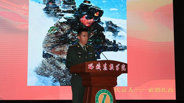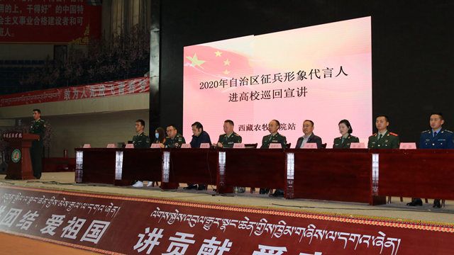 宣讲会上,与会师生集体观看了大气磅礴、震撼心灵的征兵宣传片。5名征兵形象代言人分别从自身的经历讲述了感人至深、催人奋进的先进事迹,展示了军营生活、精神风貌以及一线训练和艰苦斗争的真实场景。西藏军区动员处余代勇同志为同学们介绍了大学生应征入伍的相关政策。在活动现场,为同学们发放了自治区2020年征兵宣传手册和纪念物品等。本次活动进一步促进了广大学生深入了解应征入伍的相关政策,强化了学生依法服兵役的责任感和参军保卫祖国的使命感,有效调动了我校学生报名参军的积极性。