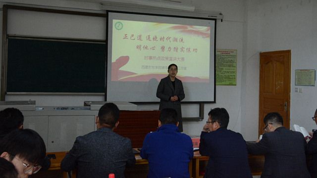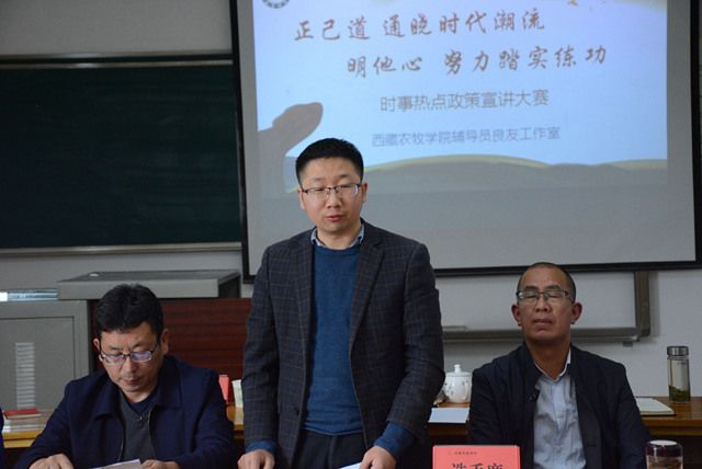 为深入贯彻落实习近平新时代中国特色社会主义思想,考察辅导员对社会主义核心价值观教育过程中的理论宣传阐释能力,扎实自身基本功和业务水平,提高应对辅导员职业素质能力大赛的能力,提高自身综合素质能力,以优良的思想政治素质和职业能力影响和教育学生。2020年6月10日10:30,西藏农牧学院辅导员良友工作室于第一教学楼205教室举办“正己道通晓时代潮流•明他心努力踏实练功”辅导员时事热点政策宣讲比赛。