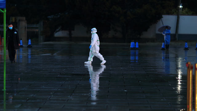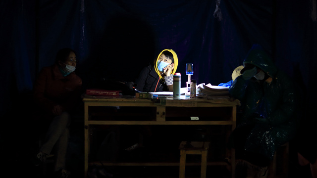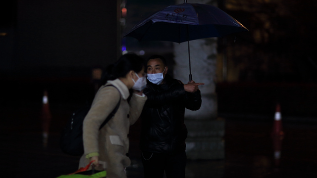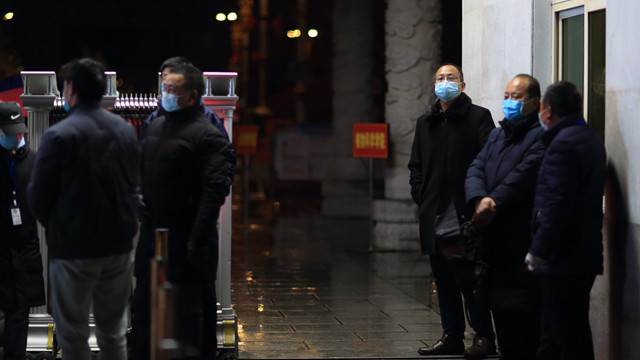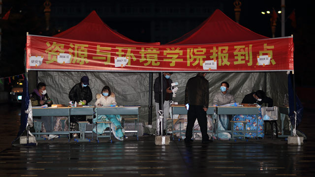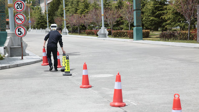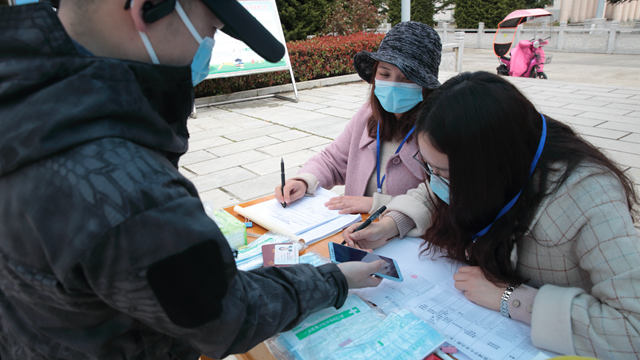 4月21日,学生志愿者返校。安保处设置警戒带。