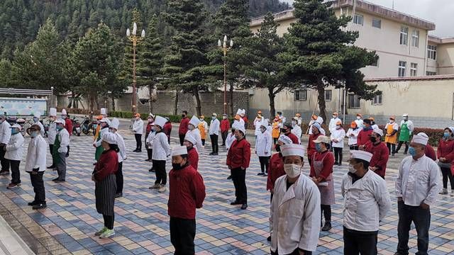 为进一步落实新冠肺炎疫情防控工作,做好师生返校后安全就餐准备,后勤管理处饮食服务中心于4月5日上午在学生食堂举行学生返校疫情防控期间师生就餐演练。后勤管理处饮食服务中心全体工作人员、学生食堂全体从业人员等100余人参加了此次演练,演练内容主要包括师生入餐管控、体温监测、就餐秩序、应急处置、离开餐厅等环节,确保师生分散就餐、安全就餐,避免聚集性交叉感染情况。