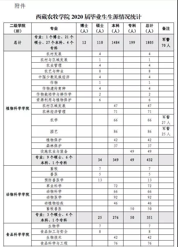 附件:西藏农牧学院2020届毕业生生源情况统计