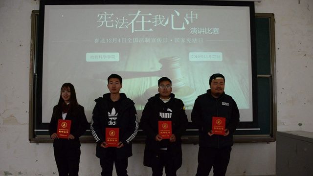 开展丰富的线下活动 各二级学院(部)紧紧围绕“学宪法讲宪法”主题,利用主题班会、团日活动,以学习、讲座、座谈的形式,组织学生学习宪法知识,畅谈对依法治国、依法治校的理解和认识,分享学习宣传宪法的心得;与此同时,积极开展了“弘扬法律精神、建设法治中国”主题知识竞赛、“讲法律、铸中国”主题演讲竞赛、“弘扬法律精神,建设法治中国”主题微视频大赛、电子海报设计大赛等系列活动,切实引导青年学生树牢社会主义法治理念。