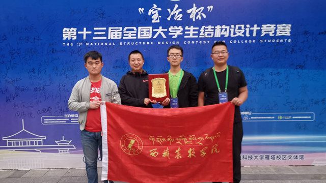 10月17日至20日,“宝冶杯”第十三届全国大学生结构设计竞赛国赛在西安建筑科技大学隆重举行,全国各省、自治区、直辖市经过选拔,共计110所高校的111支队伍参加竞赛。西藏农牧学院以西藏自治区省赛第一名的身份,派出了由柳斌、何军杰两位指导老师和16级水工专业王营、张越、16级土木工程专业张恒三位同学组成的南迦巴瓦代表队参加了此次国赛。