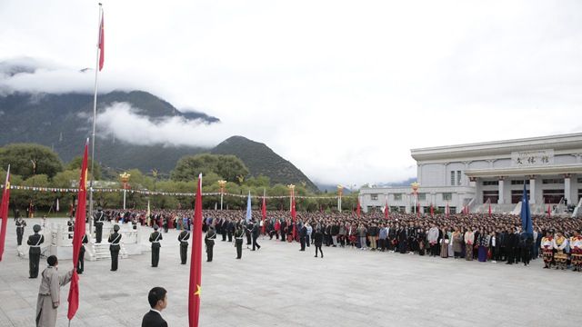 学院领导云丹加措、郑维列、赵垦田、郭永刚以及全体师生员工6000余人参加仪式。