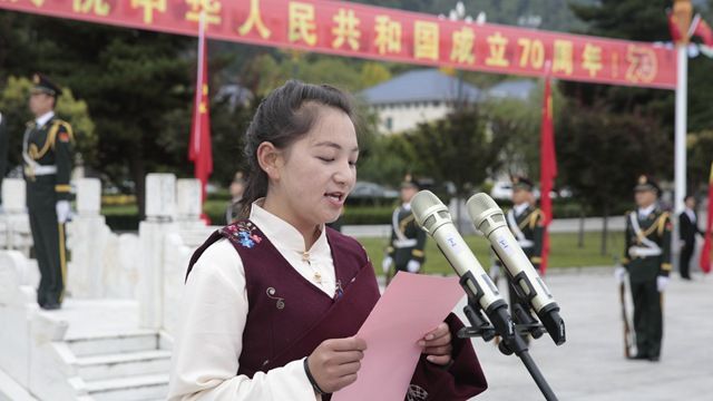 学生代表2016级动植物检疫本科班卓玛在发言中,表达中华儿女的爱国之心、感恩之情,表达肩负国家富强、民族复兴历史重任的决心。