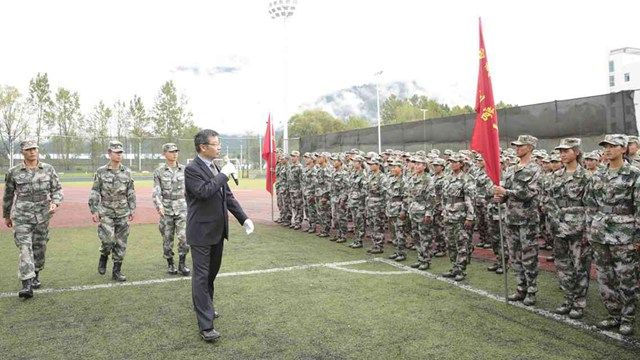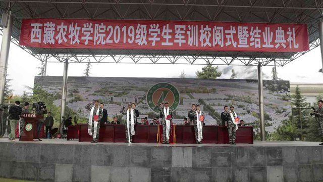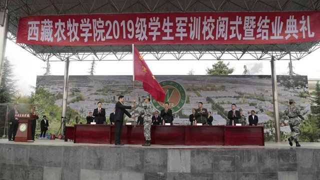 9月14日上午,西藏农牧学院2019级学生军训校阅式暨结业典礼在体育场隆重举行,学院党委副书记、院长高学,党委副书记、副院长王从严,副院长郑维列,党委委员、副院长郭永刚,林芝军分区副司令员次翁扎西同志,军训营及学生工作处、教务处、宣传部、团委、各二级学院等负责同志参加了结业典礼。