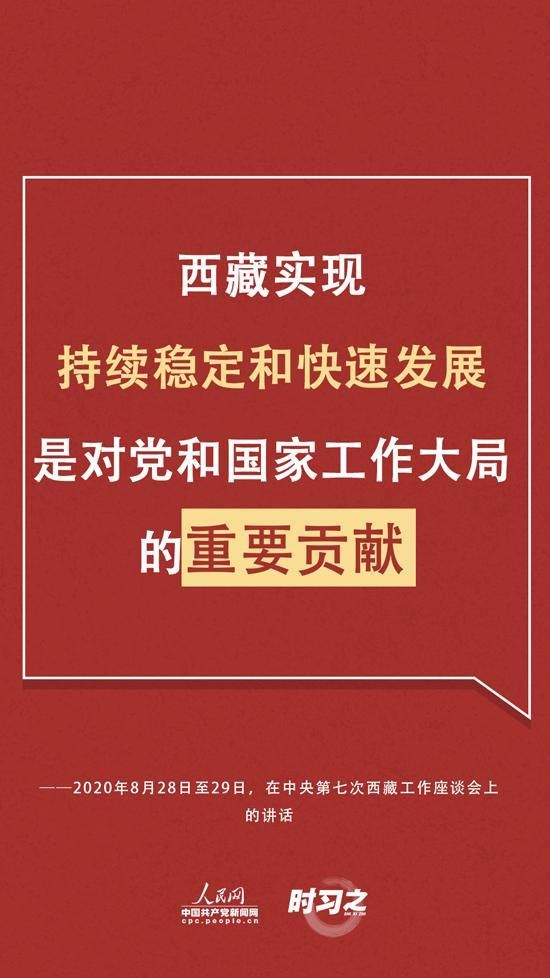 “党中央关于西藏工作的方针政策是完全正确的,西藏实现持续稳定和快速发展是对党和国家工作大局的重要贡献。”座谈会上,习近平代表党中央向奋斗在雪域高原的广大同志们致以了诚挚的问候。