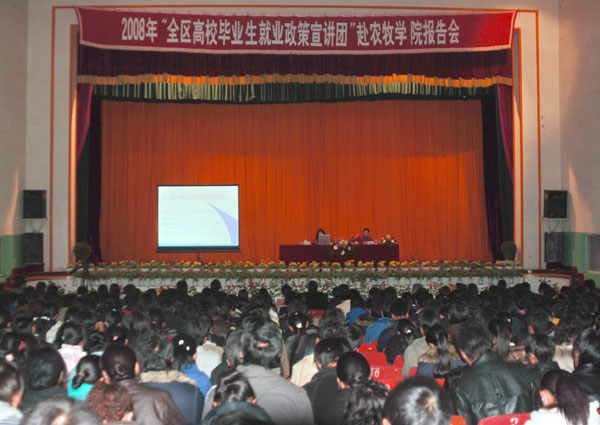 2008年4月16日上午,由自治区劳动保障厅、人事厅、教育厅、国资委、工商联、团区委、西藏移动公司、拉萨新兴职业技能培训学校、西藏日报社、西藏电视台等单位组成的“西藏自治区高校毕业生就业政策宣讲团”在学院...