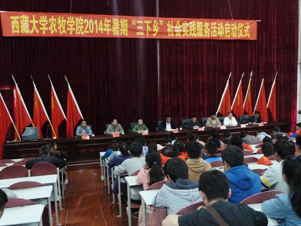 7月23日下午,我院举行了2014年暑期“三下乡”社会实践服务活动启动仪式。院党委副书记、院长次旦平措同志出席仪式并讲话。各二级学院(部)相关领导及2014年暑期“三下乡”社会实践服务队全体成员参加启动仪式。...