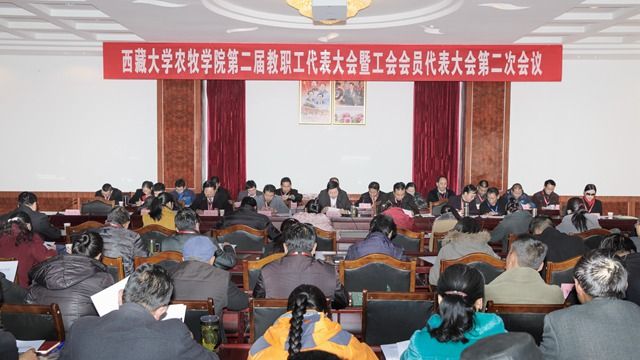 2014年11月14日,我院隆重召开第二届教职工代表大会暨工会会员代表大会第二次会议。学院党政领导次旦平措、郑维列、赵垦田、谢金川、琼日、郭永刚在主席台就坐,大会代表、列席代表和特邀代表共95人参加大会。会...