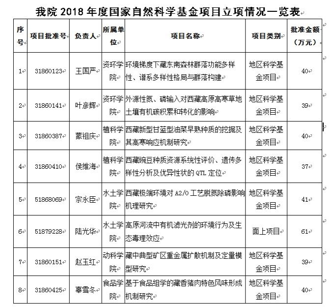 8月16日,国家自然科学基金委公布了2018年度国家自然科学基金项目资助情况,我院8个项目获得资助(其中地区科学基金项目7项、面上项目1项),立项率19.5%,获批直接经费共计337万元。项目立项学部分布情况为:生...