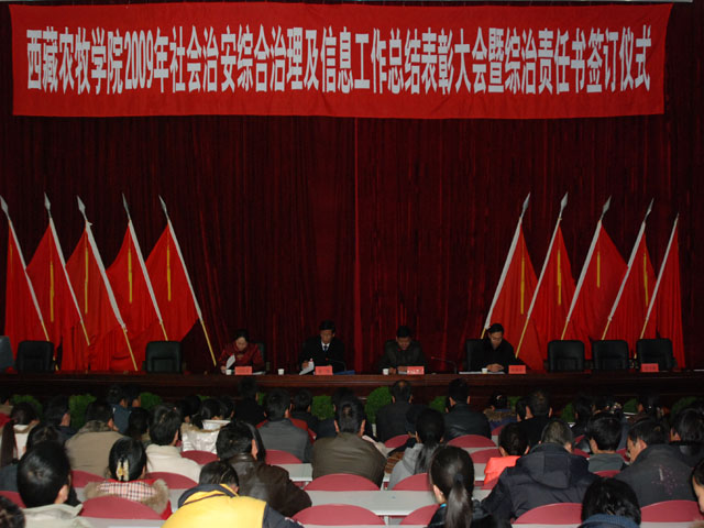2009年12月28日下午,我院在学术报告厅隆重召开2009年社会治安综合治理工作 信息工作总结表彰大会暨2010年社会治安综合治理目标管理责任书签订仪式。大会由院党委委员、纪委书记公曲同志主持,院党委委员、副院...