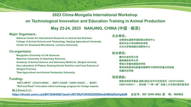 由南京农业大学动物消化道营养国际联合研究中心主办,西藏农牧学院动物科学学院协办的“2023‘一带一路’畜牧业科技创新与教育培训中蒙合作论坛”于2023年5月24日在南京农业大学通过线上线下的方式召开,我校高原...