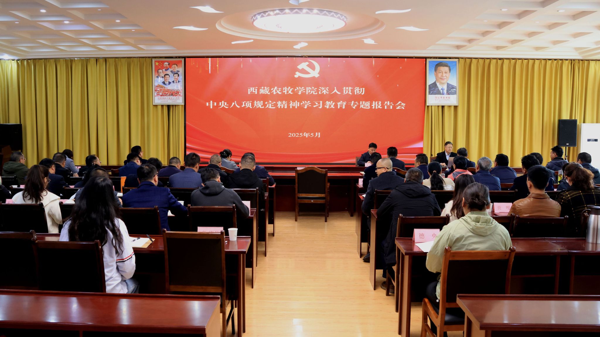 为从严从实推进深入贯彻中央八项规定精神学习教育,2025年5月19日,西藏农牧学院邀请国防大学战役学硕士、海军大校贾晓光作中央八项规定精神专题报告。会议由学校党委书记、副校长张兴堂主持。学校党委班子成员、...