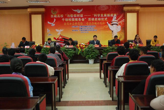 2012年9月24日上午,由共青团西藏自治区委员会发起的西藏高校“与信仰对话——‘科学发展新成就’千场校园报告会”活动启动仪式在我院举行。院党委书记、副院长纪建洲,团区委副书记燕红出席会议并讲话。院党委副...