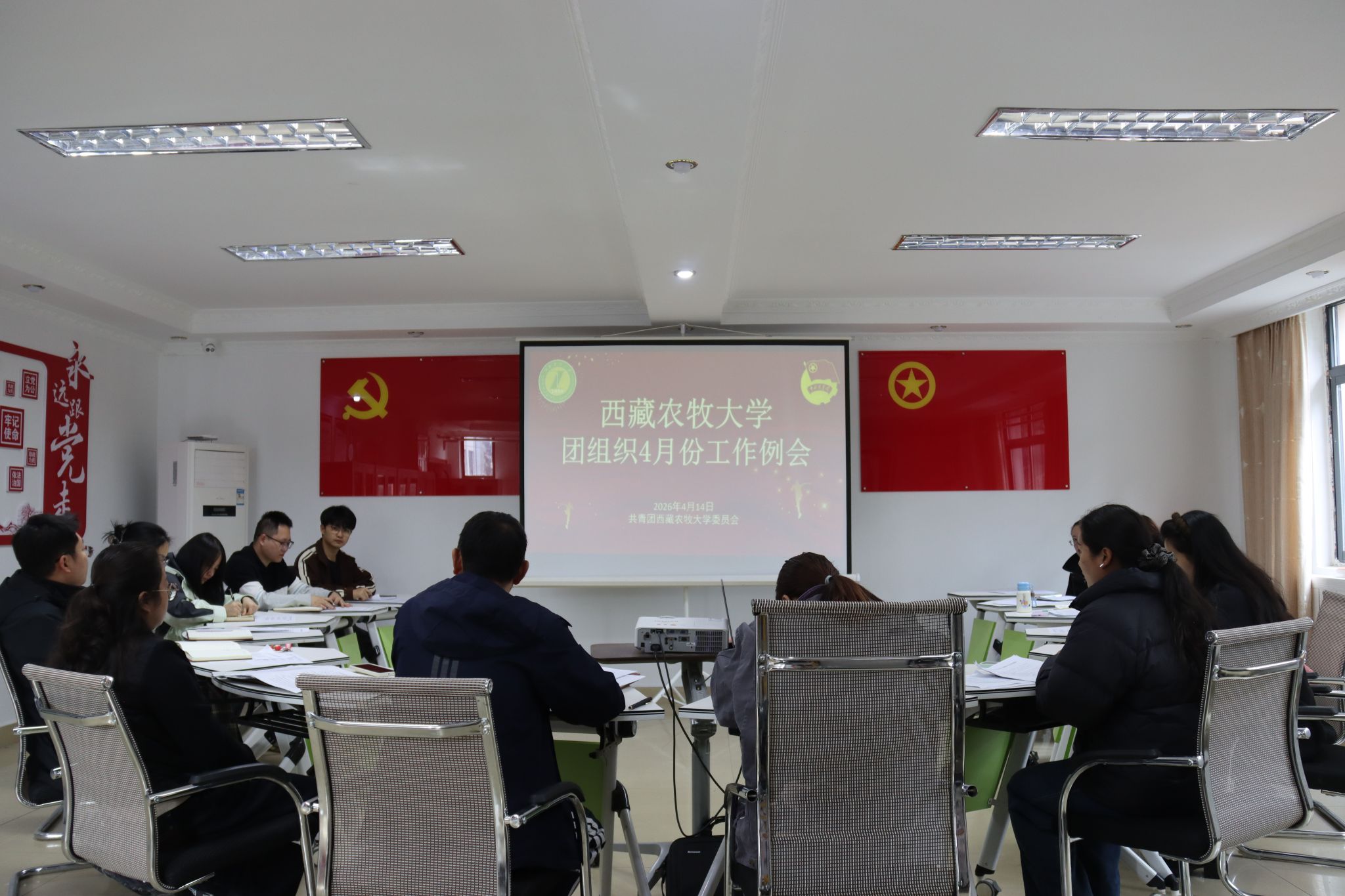 为落实共青团工作安排及文件精神,进一步明确下一阶段学校共青团工作重点任务,2026年4月14日,在团委直属党支部活动室召开4月份团组织工作例会。会议由普旺堆同志主持,团委全体工作人员、各团总支书记参加会议...