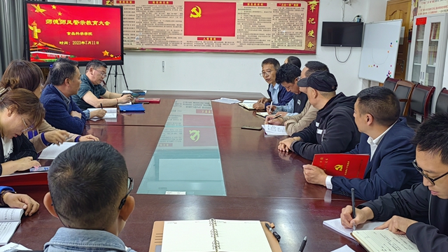 为推进师德师风建设,2023年7月11日,食品科学学院召开师德师风警示教育大会,食品科学学院全体在校职工参加会议,食品科学学院党委组织委员、副院长旦巴作教育宣讲。 会上,刘明全领学了习近平总书记在中...