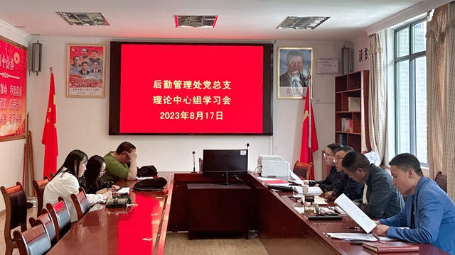 为了进一步深刻领会习近平新时代中国特色社会主义思想的精神实质,强化理论武装,指导实践工作,8月17日上午,后勤管理处党总支召开理论中心组学习会,处党总支班子成员和各党支部委员参加了此次学习会,会议由处...