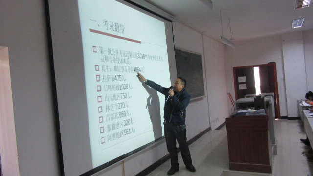 5月5日下午,我院招生就业处举行了2015年我区第一批公招考录专题工作会议及报名系统操作培训。各教学单位主要领导、负责就业工作辅导员及招生就业处全体人员参加会议。 会上,招生就业处宣读了《西藏自治区201...