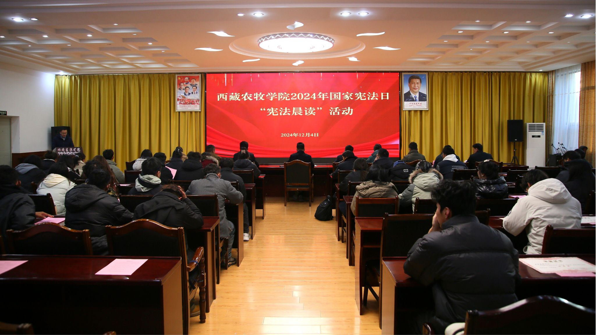 12月4日,在我国第十一个国家宪法日之际,西藏农牧学院举办2024年国家宪法日“宪法晨读”活动,校党委宣传部、各二级学院(部、所)相关负责人,师生代表以及学校“学宪法 讲宪法”相关赛事获奖人员110余人参加活...