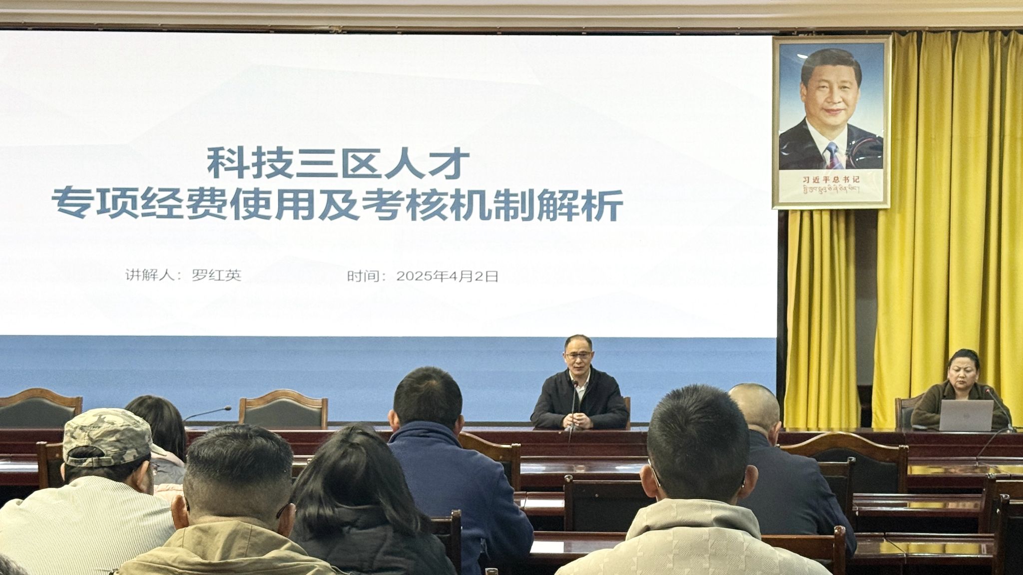 为贯彻落实自治区科技兴藏战略部署,扎实推进科技人才服务基层工作,4月2日晚,我校在中心会议室组织召开2025年“三区人才”支持计划与“科技包保”工作启动会暨专项培训会。科研处副处长李奇主持会议,75名入选...