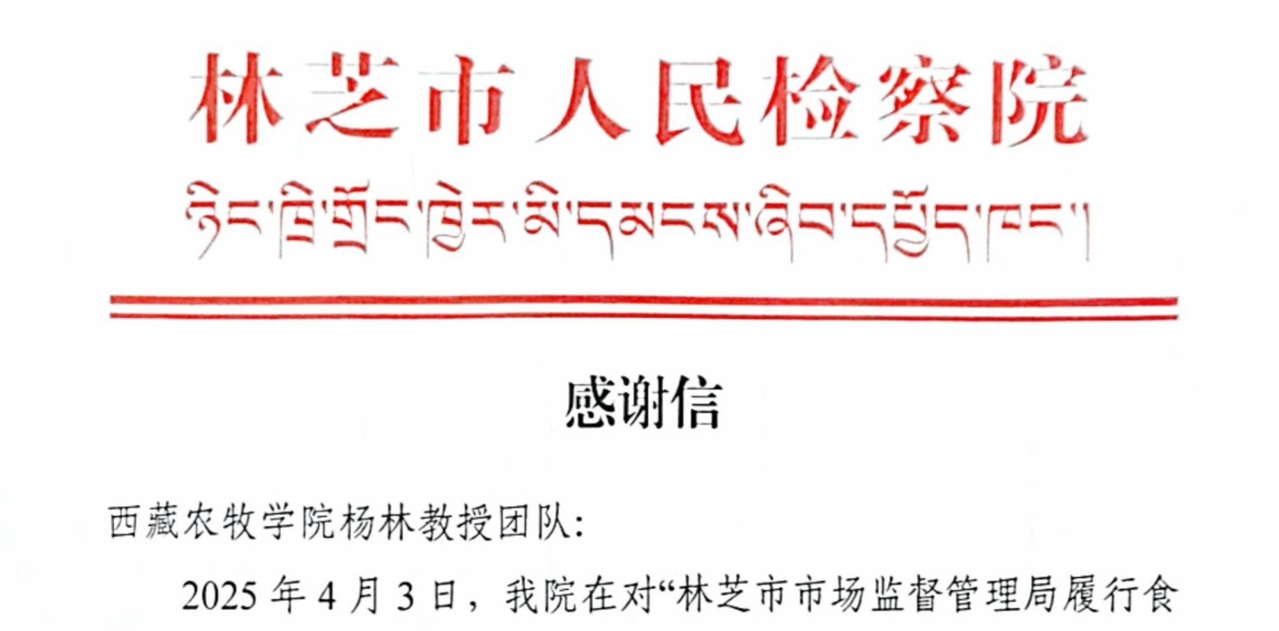 近日,我校在林芝市人民检察院案件办理中,积极落实校检协作机制,食品科学学院杨林教授团队协助林芝市人民检察院完成“外卖食品”样品中大肠杆菌等微生物检测工作,并向林芝市人民检察院提交包含各项微生物指标...