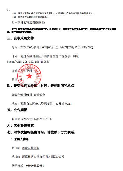 西藏农牧学院理工实验大楼废液、废气处理设施建设项目采购公告