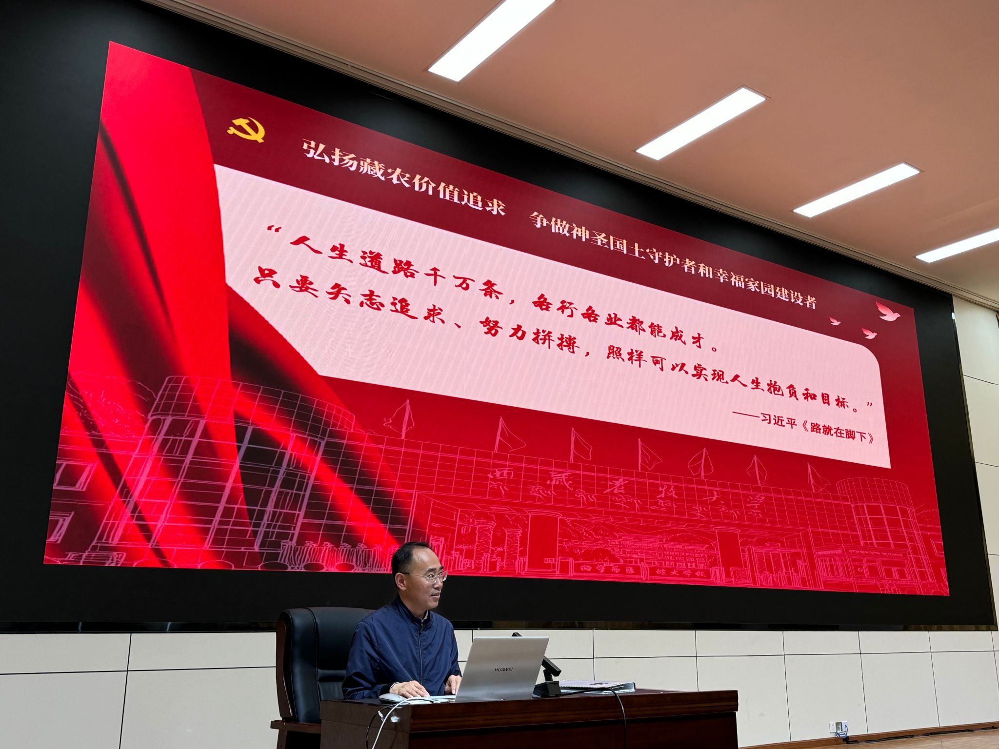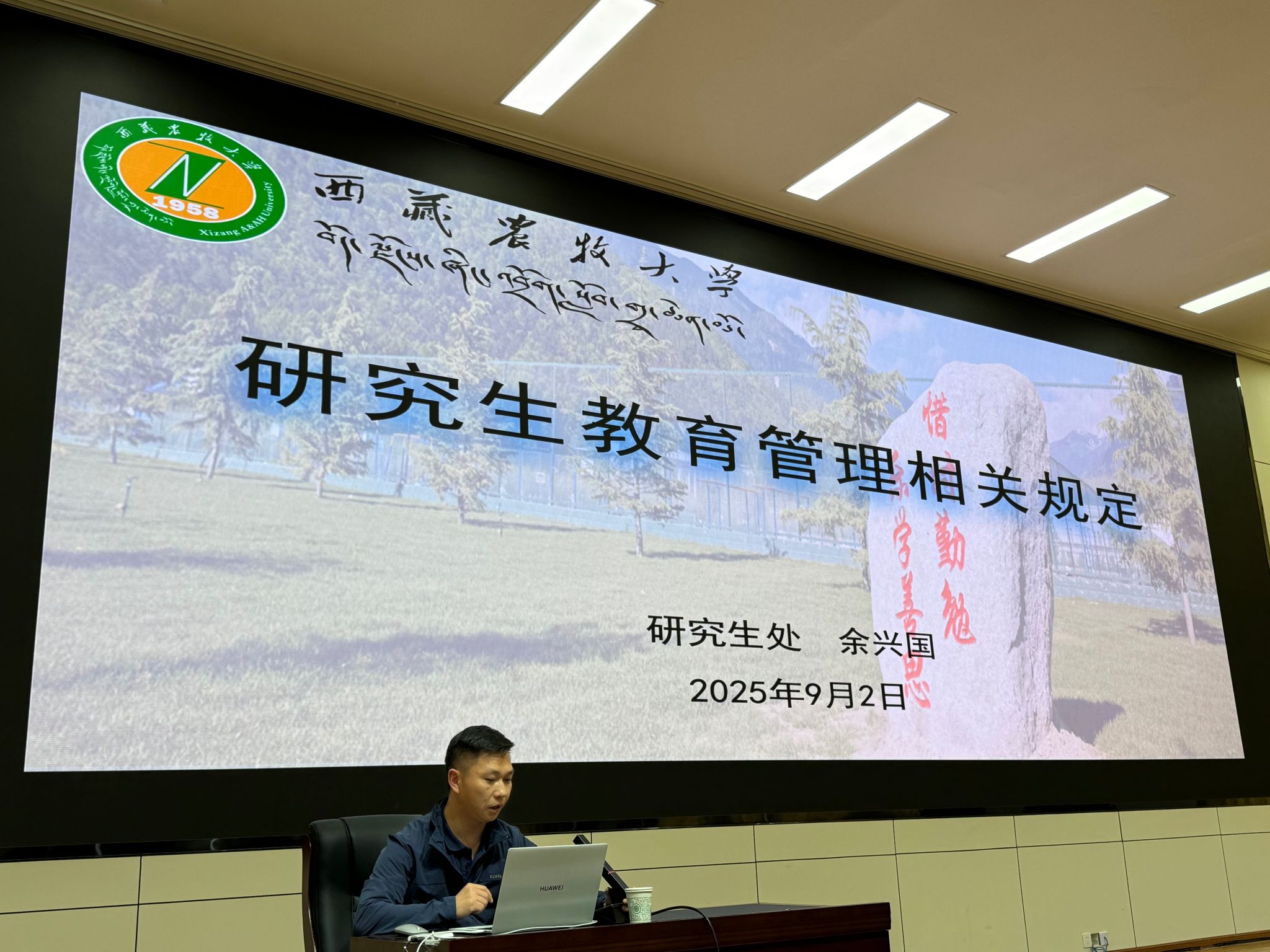 本次入学教育培训分为校院两级组织培训,校级培训由研究生处组织,培训开展情况具体如下:学生工作部部长赵德军以《弘扬藏农价值追求 争做神圣国土守护者和幸福家园建设者》为主题从党建筑牢,政治第一;学在藏农,学习第一;五育融通,安全第一;就创新藏,就业第一等四个层面进行了安全意识的教育。研究生处余兴国老师以《筑梦藏农,启航研途:研究生培养体系与学业规划第一课》为主题,从学籍管理;培养管理;学位申请等三个方面进行了成长发展的教育。科研处副处长胡炎以《坚守学术诚信,恪守科研伦理:开启研究生学术生涯的第一粒扣子》为主题,从学术诚信定义、基本原则、规范内容;学术不端行为类型与案例;学术诚信保障机制;科研成果发表过程规范等四个方面进行了学术素养的教育。马克思主义学院张涛老师以《坚决反对分裂 自觉维护祖国统一和民族团结》为主题,进行了理想信念的教育。
