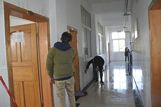全体成员在部长和副部长的带领下,分组对我院三号教学楼大厅、走廊、楼梯等进行了地毯式的清扫。劳动过程中同学们充分发扬“不怕苦、不怕累、不怕脏”的优良传统,经过一上午的辛勤劳动,第三教学楼焕然一新,为师生创造了一个舒适卫生的学习环境。